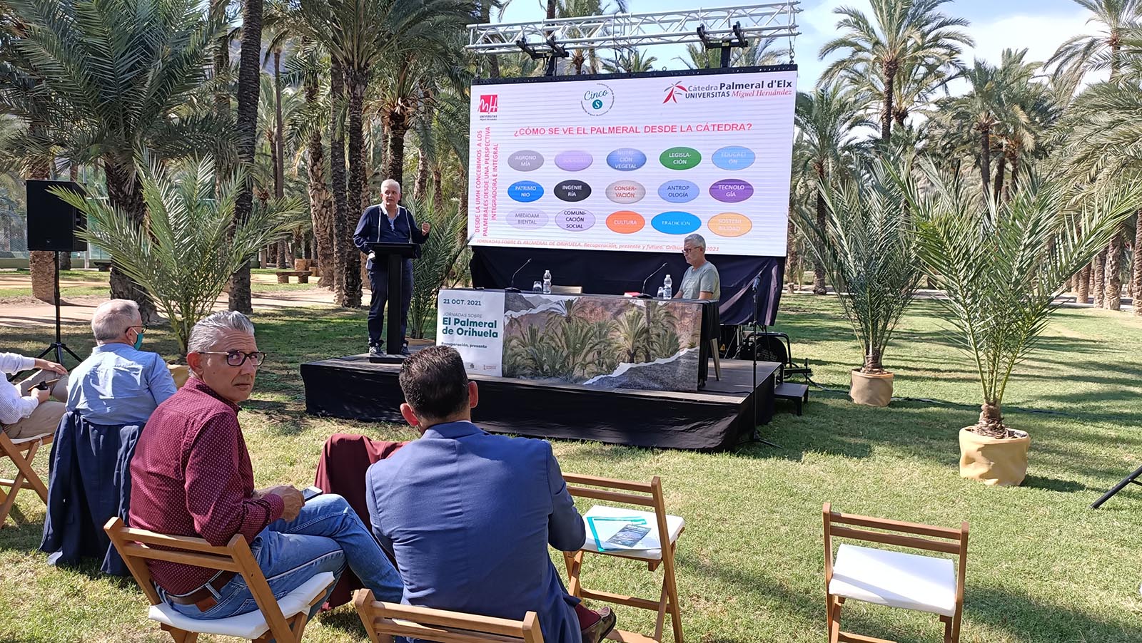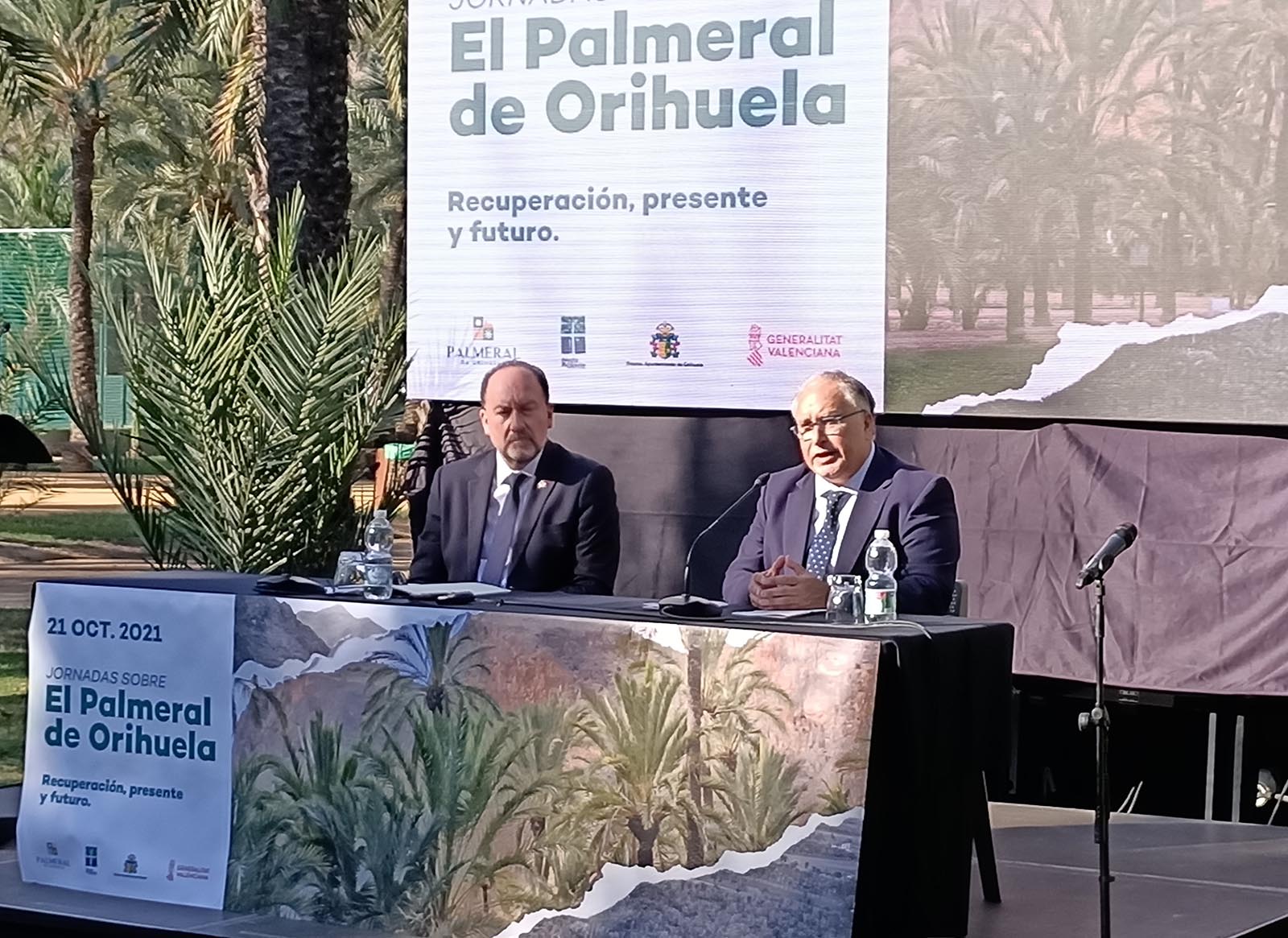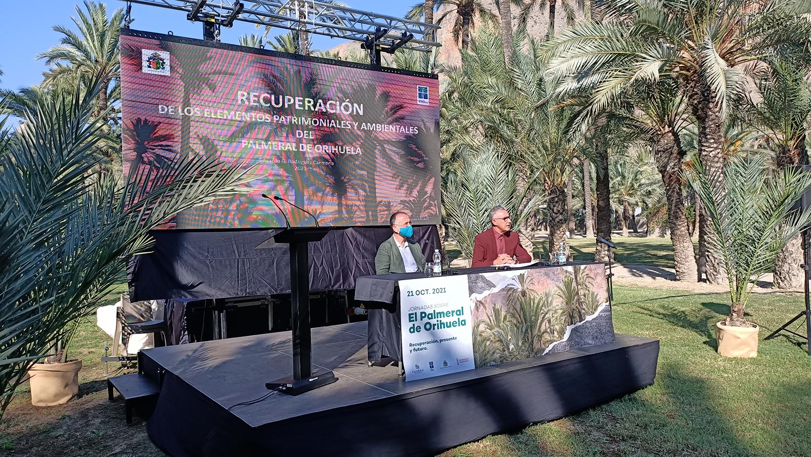 El acto fue inaugurado por el alcalde de Orihuela, Emilio Bascuñana, y el director general de Administración Local, Toni Such, quien se congratuló de ver el buen estado del Palmeral e instó al alcalde a que no pierda el tren de los fondos europeos “Next Generation” porque son muy importantes para avanzar en digitalización de la administración y en movilidad sostenible. El primer edil oriolano le solicitó colaboración para optar a los citados fondos y a otros, manifestando que ya tienen preparados muchos proyectos para optar a esas ayudas, algunos de ellos relacionados con la consolidación del Palmeral.